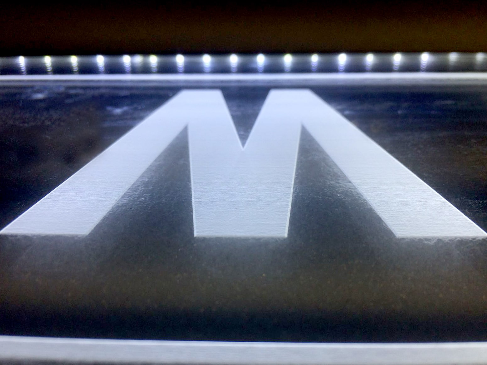 En las letras iluminadas con luz indirecta, la iluminación se realizará mediante unos Leds que se alojan en el interior de las letras, proyectando la luza hacia la pared. De este modo se genera un halo luminoso en la pared que hace destacar la marca por contrate con la oscuridad del frente